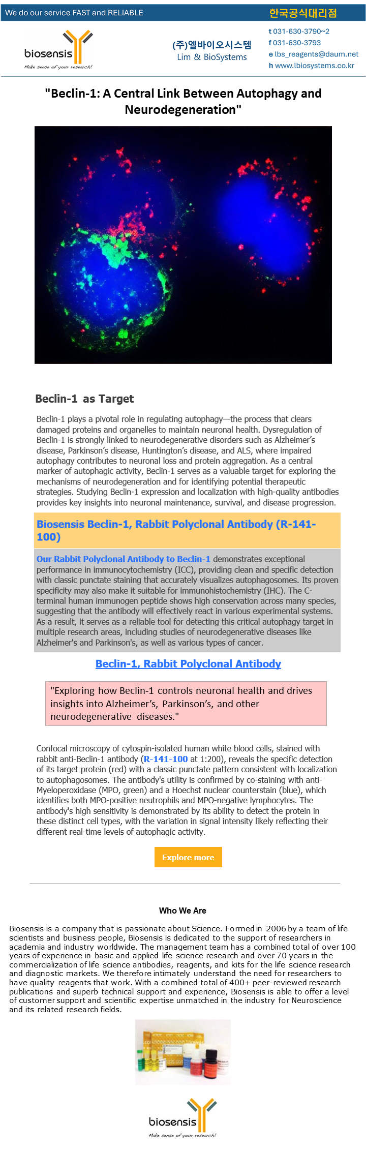 [Biosensis] "Beclin-1" : A Central Link Between Autophagy and Neurodegeneration