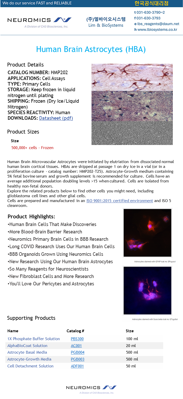 [Neuromics] Pure, potent, and easy-to-culture Human Primary Astrocytes - HMP202 -