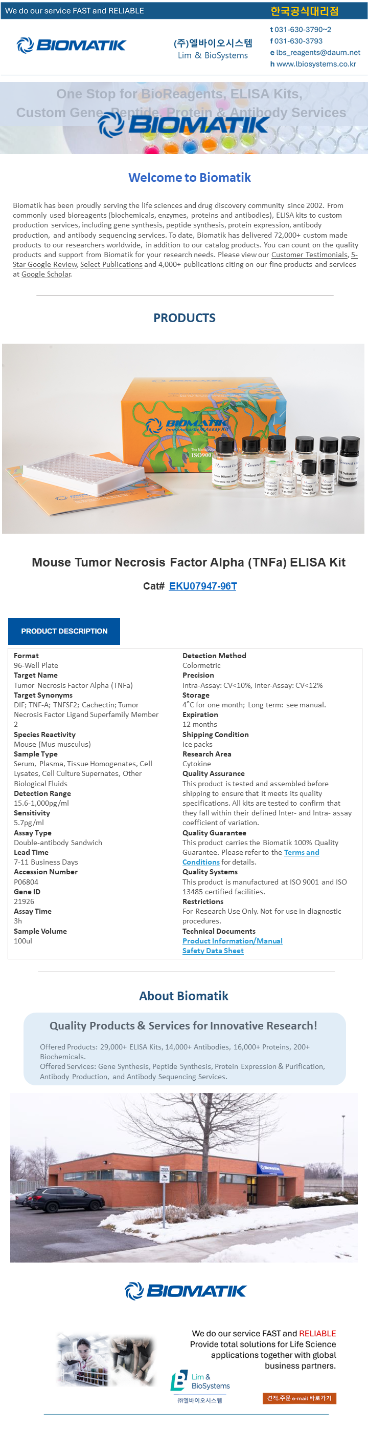 (주)엘바이오시스템은 Biomatik의 한국공식대리점입니다.